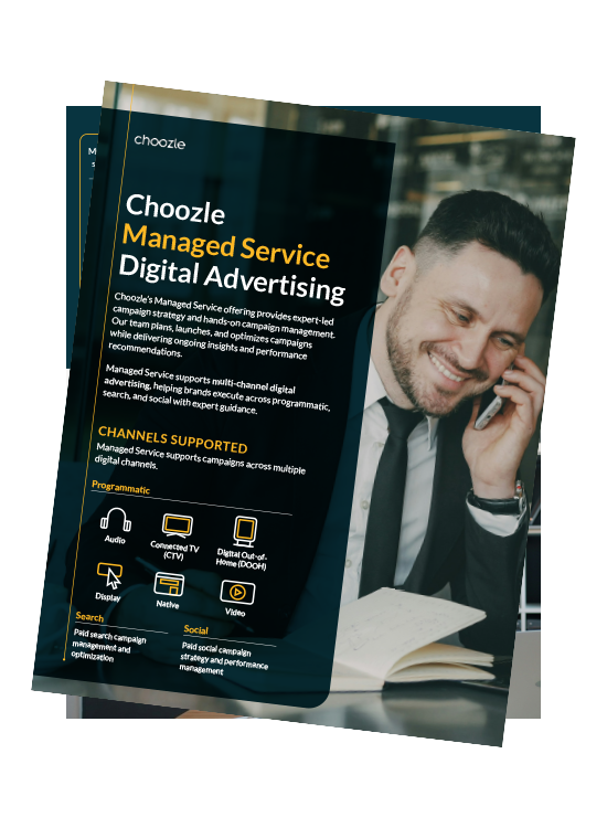 Digital advertising performs best when strategy, execution, and optimization work together. Choozle’s Managed Services combines expert guidance with powerful technology to unify campaigns across channels, helping you reach the right audiences, improve performance, and turn complex media efforts into a clear, measurable growth strategy.